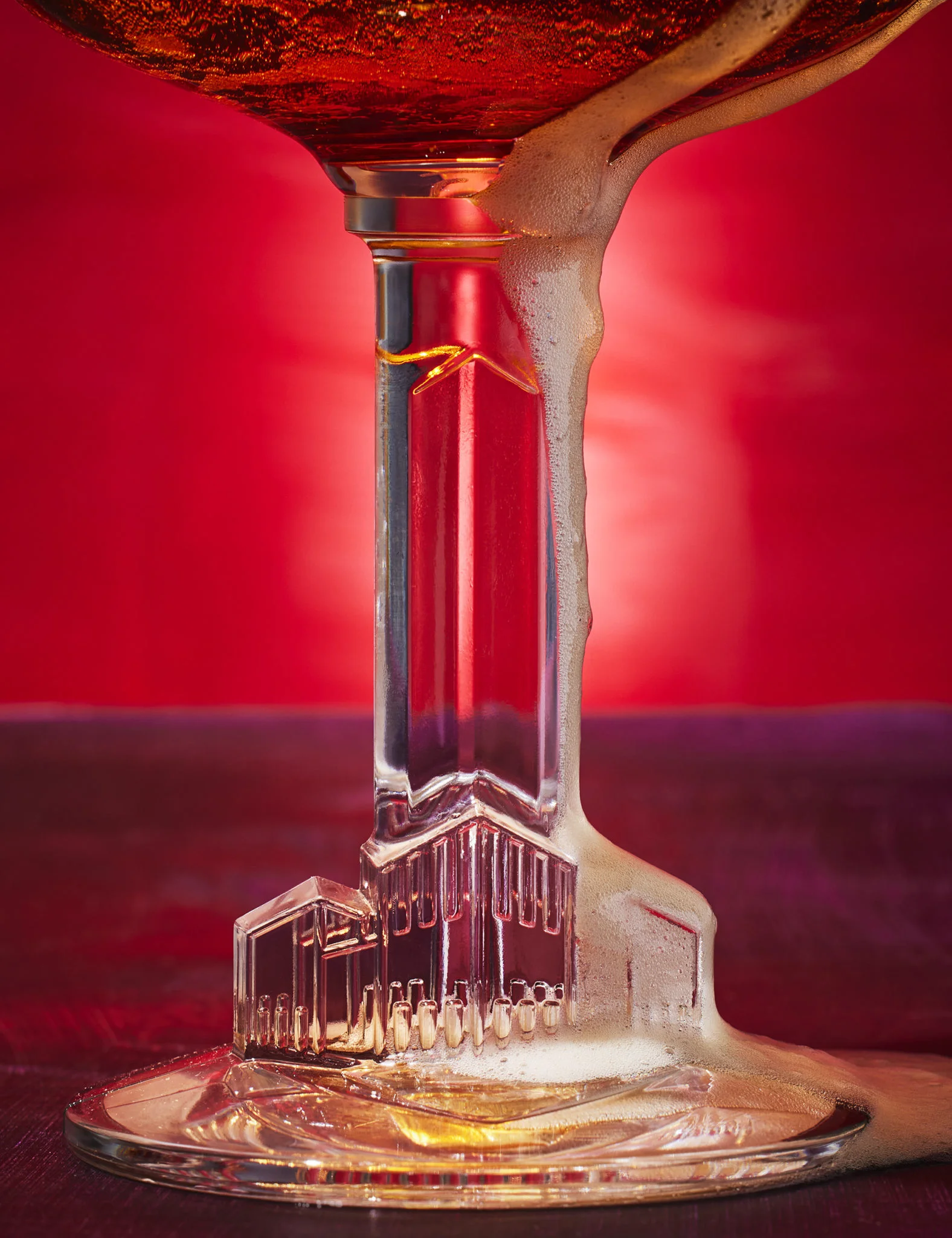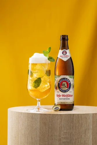 To optimize the illustration of beer I use a special technique to stabilize the froth so that it sets longer and can be adjusted to the right height in the glass. This technique is ideal to make necessary adjustments during a photoshoot and it makes it possible to shoot several takes in a row on film. When a scene, for instance at a bar or a party, requires more beers in one shot, this method is particularly useful.