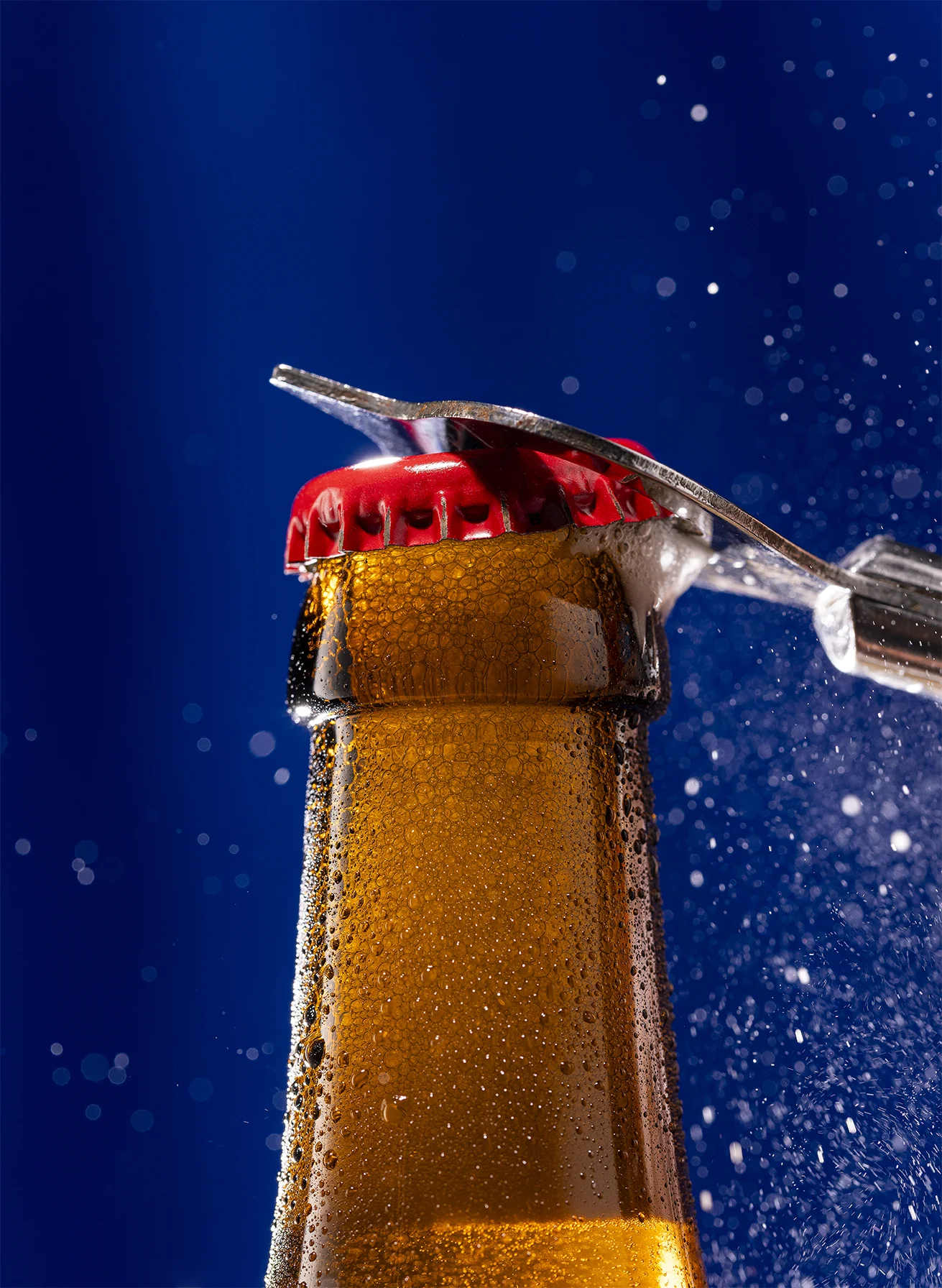 For the adding of condense, dripping of glasses and bottles, cold effects, movement and pouring effects, I use different techniques. Needless to say, pouring beer from the tap, with a beautiful and steady result, is no problem.